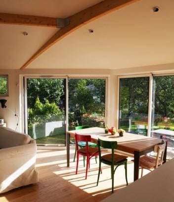 Des matériaux sains et écologiques : bois, ouate de cellulose, fibre de bois, ardoises.
